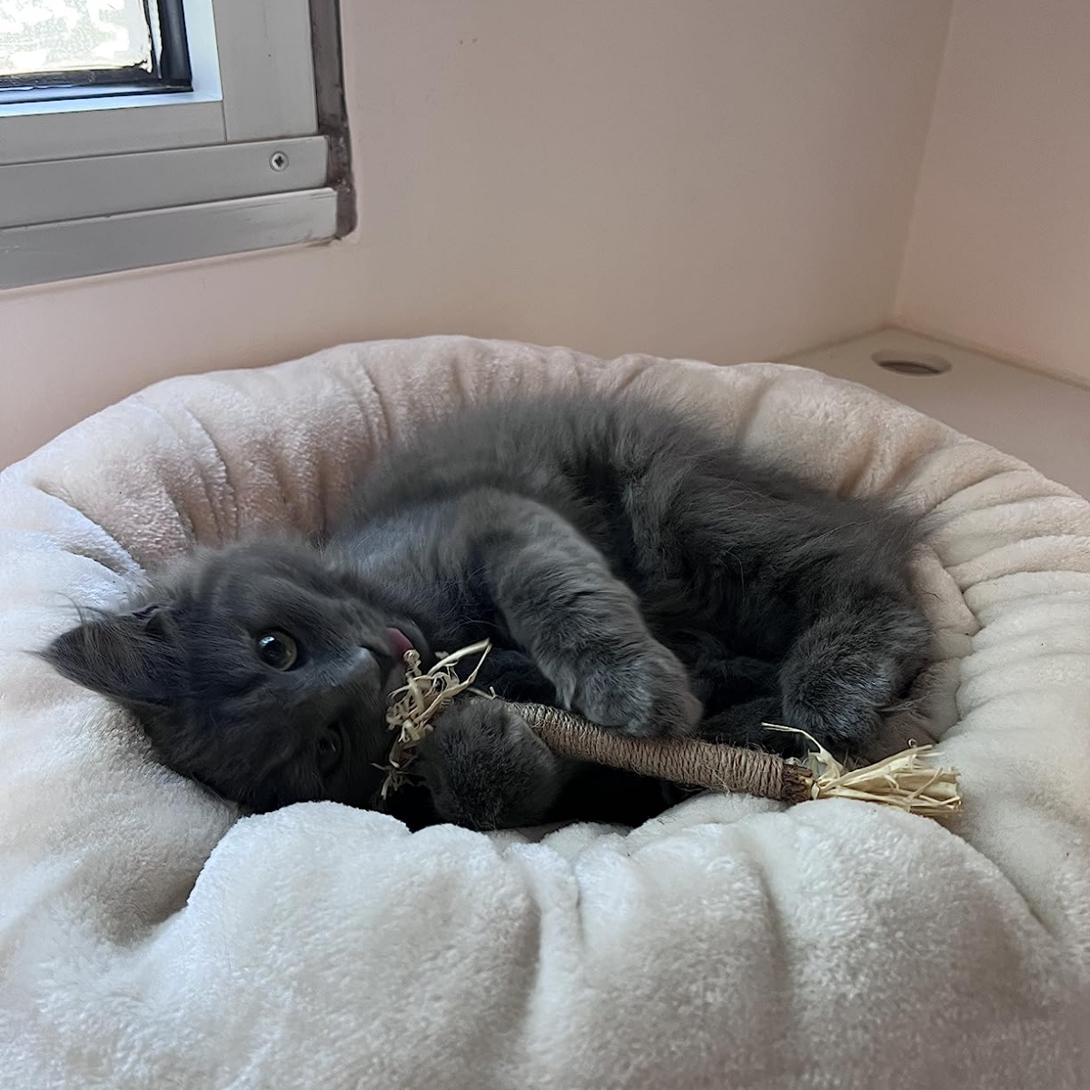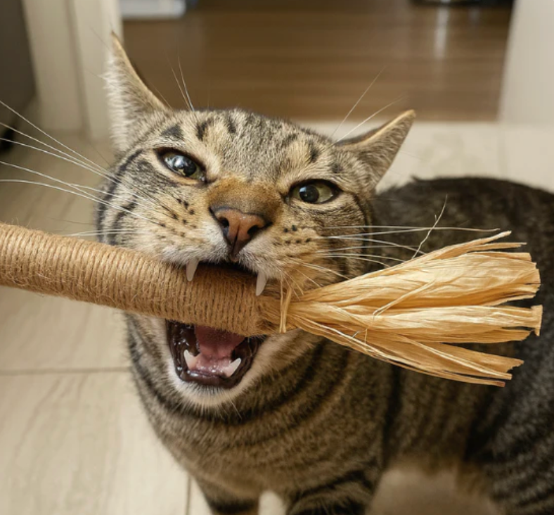 Dental Bite™ le da a tu gato una salida segura para su instinto natural de morder, evitando que ataque cables, plásticos u otros objetos del hogar.